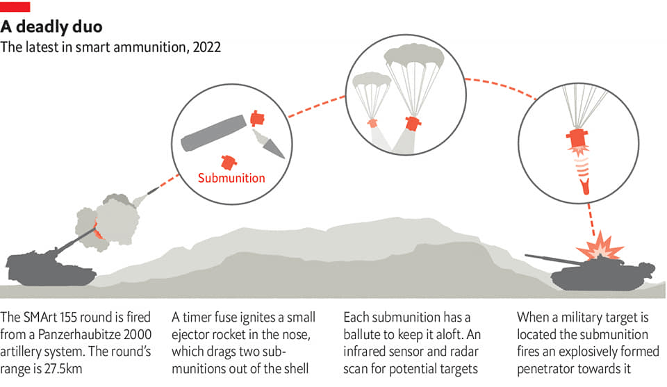 გერმანული SMART 155 ტიპის კასეტური ჭურვი SMART 155 გათვლილია სხვადასხვა ტიპის ჯავშანმანქანების გასანადგურებლად.