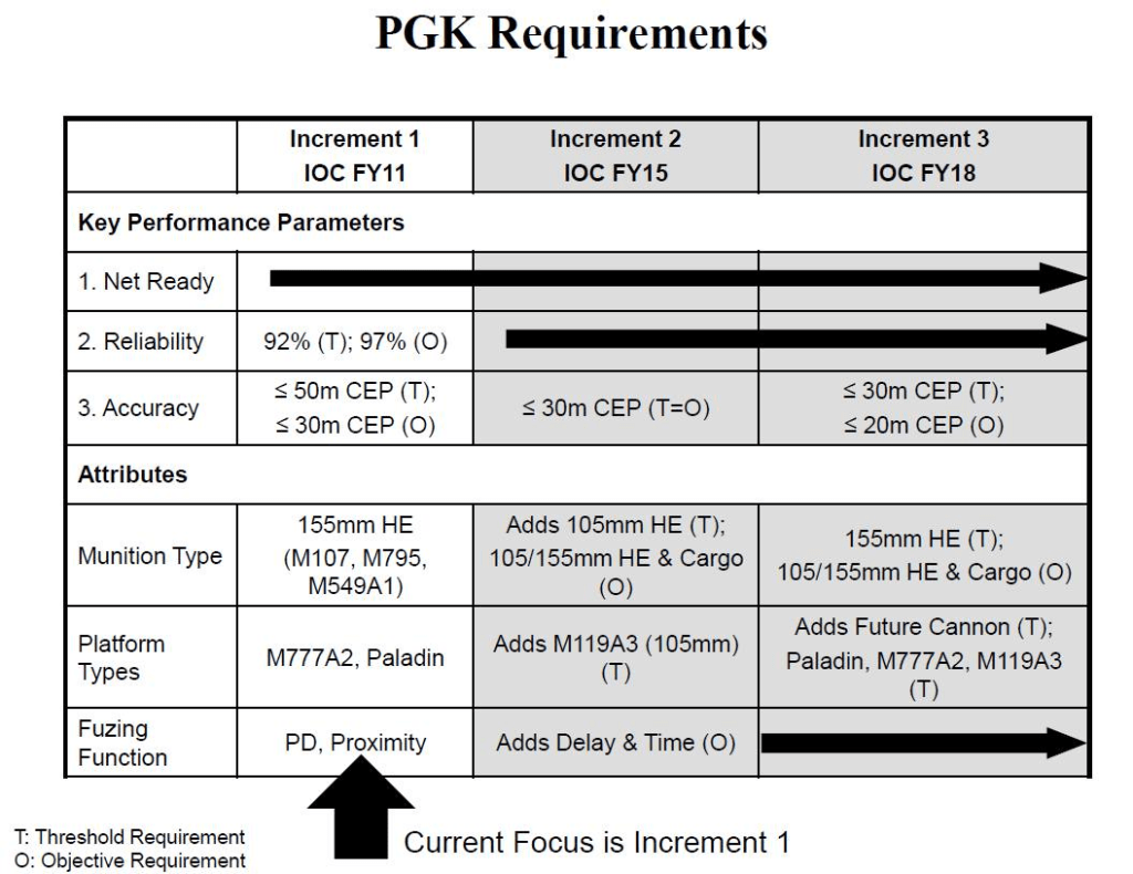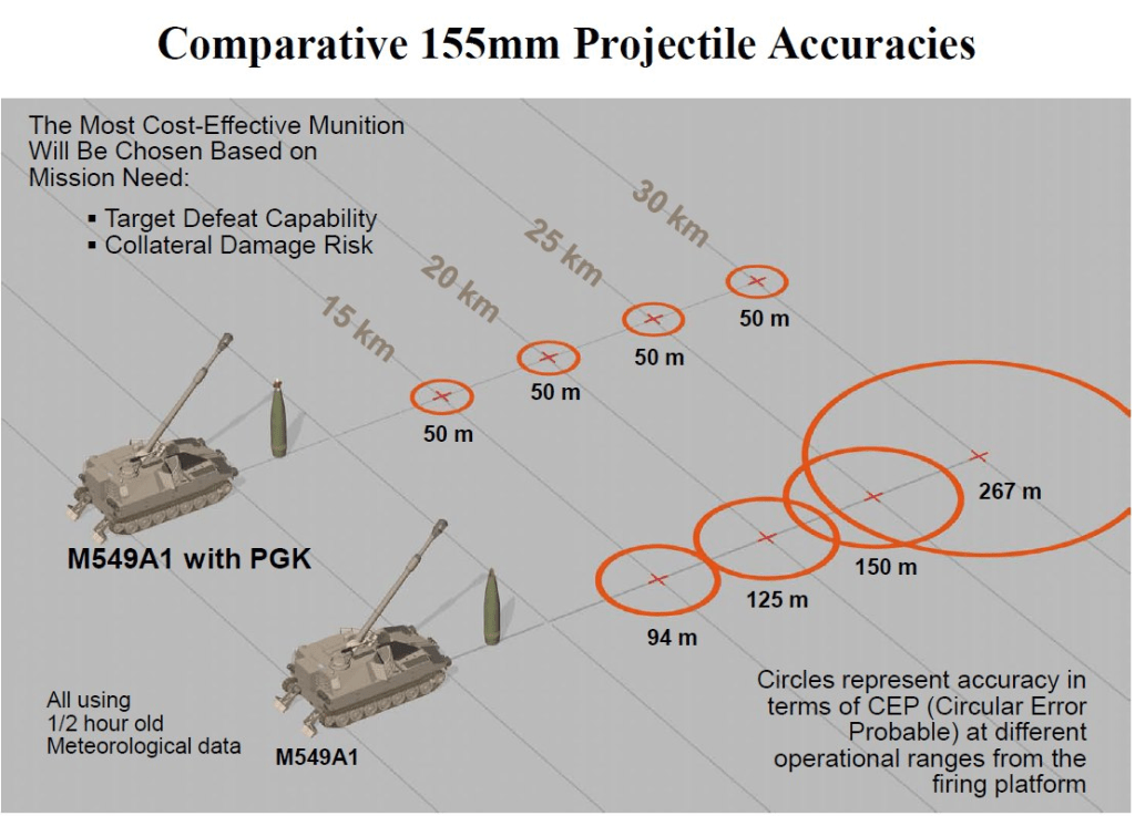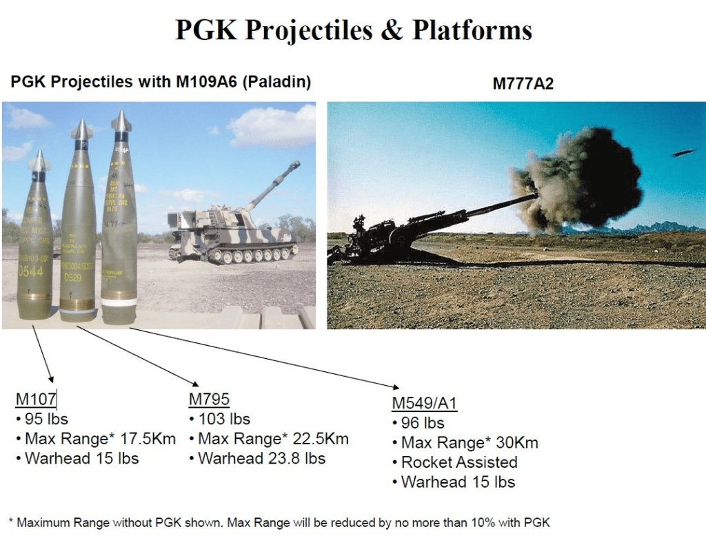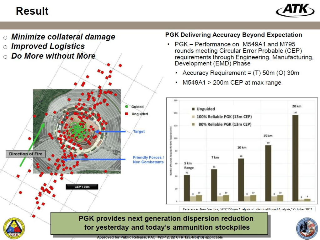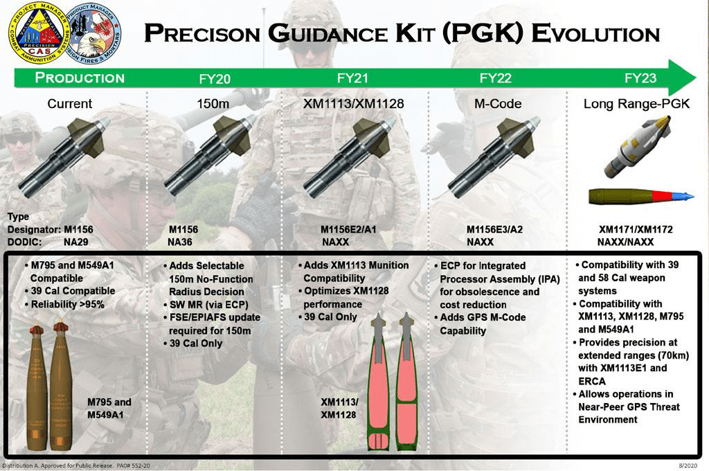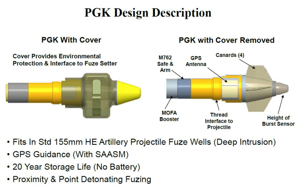 M1156 PGK ტიპის GPS ით კორექტირებადი ტურბინიანი ამფეთქებით აღჭურვილი 155 მმ სტანდარტული საბრძოლო მასალა შედარებით იაფი გამოსავალია ზუსტი ცეცხლის წარმოებისთვის სტანდარტულ უმართავ საბრძოლო მასალასა და ძვირადღირებულ M982 Excalibur-ის ტიპის ჭურვებს შორის.