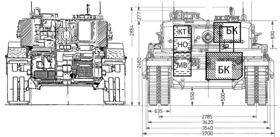 – გაძლიერდა ჯავშანი ჩამოსაკიდი კომპოზიტური პანელების საშუალებით, პანელების სართო მასა 3 ტონა.