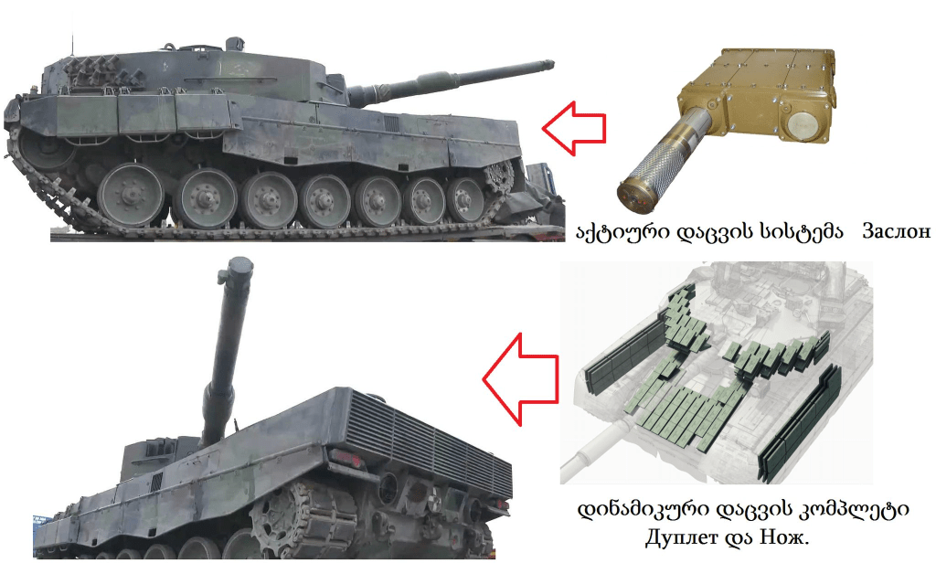 P.S. Leopard-2A4 ტანკებზე ამ ორივე სისტემის კომბინირებულად დაყენებით ბრძოლის ველზე ტანკების გადარჩენის ალბათობა 50-60 % ით გაიზრდება.