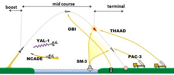 ამის მიხედვით სხადასხვა სისტემის ანტირაკეტები სამიზნეს ფრენის შუა ან ბოლო ეტაპზე ანადგურებენ.