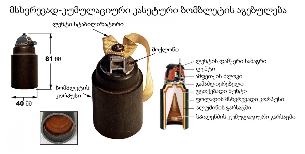 DPICM (Dual-purpose improved conventional munition) ტიპის კასეტური ელემენტები პრაქტიკაში ეფექტურია მსუბუქი ჯავშანტექნიკის, ავტოტექნიკის და ქვეითების გასანადგურებლად.
