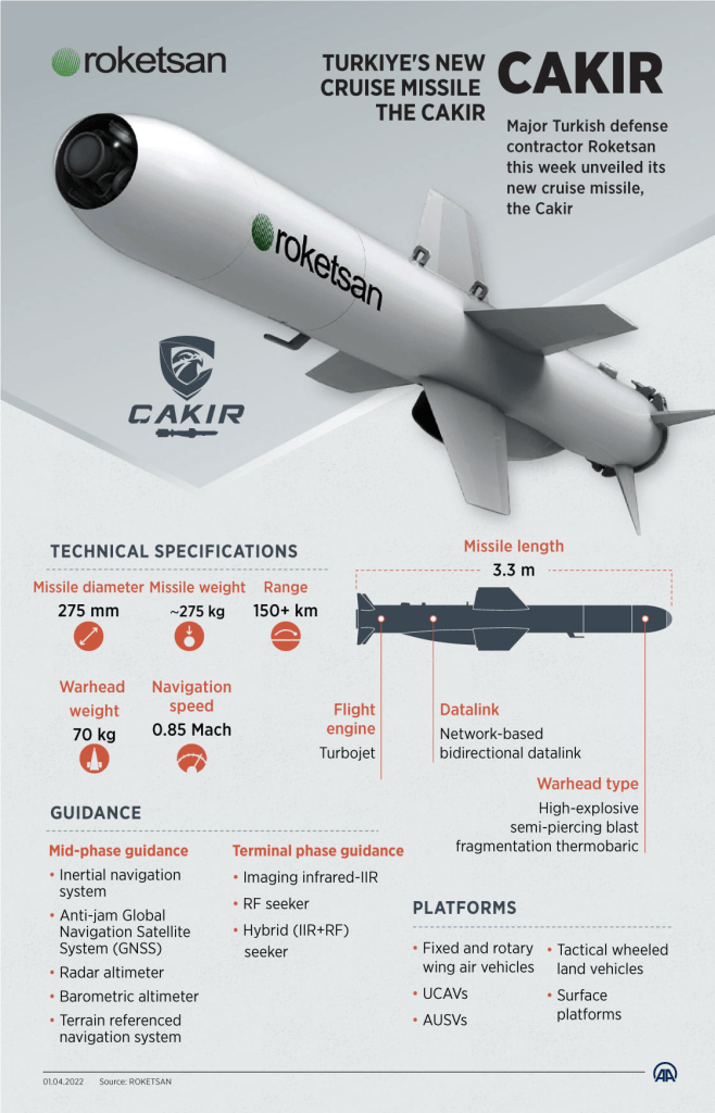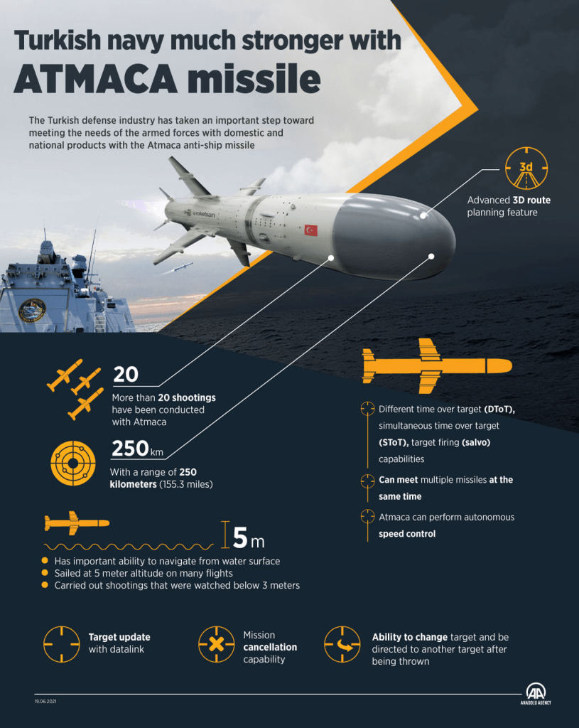 ATMACA-ს მოქმედების მაქსიმალური მანძილია 250 კმ.