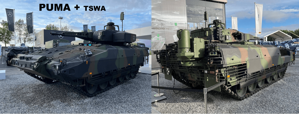 9) გერმანული ქსმ PUMA მოდერნიზებული TSWA სისტემით. TSWA ( Turret Independent Secondary Weapon Assembly ) წარმოადგენს კოშკურის უკანა ნაწილში დამონტაჟებული შეიარაღების დამატებით დამოუკიდებელ სისტემას რომელიც შედგება ოპტიკურ ელექტრონული დამიზნების და სხვადასხვა ტიპის უმართავი და მართვადი რაკეტების გამშვები ბლოკისგან.
