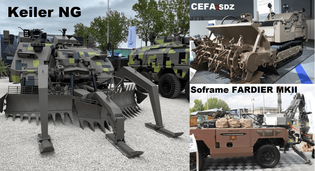 15) სხვადასხვა ტიპის საინჟინრო გამნაღმველი მანქანები, მსუბუქ, საშუალო და მძიმე კატეგორიაში. ეკიპაჟიანი და დისტანციური მართვის რობოტის კონფიგურაციებში: