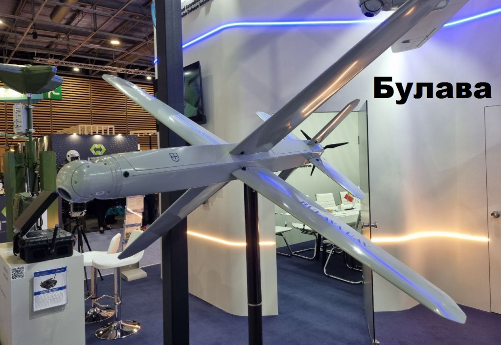 18) გამოფენაზე უკრაინამ წარმოადგინა საკუთარი წარმოების უახლესი X ისებური ფრთაშლილობის ბარაჟირებადი კამიკაძე დრონი Булава. წარმოადგენს რუსული Ланцет-ის კლონს.