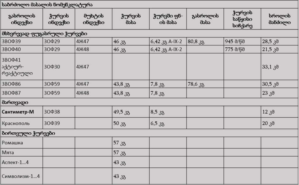 ტაქტიკურ-ტექნიკური მონაცემები:
