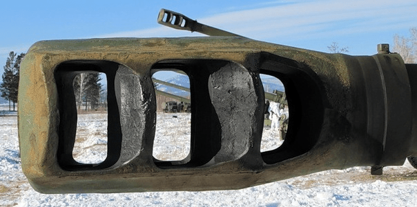 – სამკამერიანი ლულის მუხრუჭი, რომელიც სროლისას წარმოქმნილ უკუცემას 63 % ით ამცირებს.
