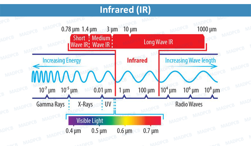 ინფრაწითელი სპექტრი ჩვეულებრივ იყოფა შემდეგ კატეგორიებად, რომლებიც განისაზღვრება ტალღის სიგრძით: